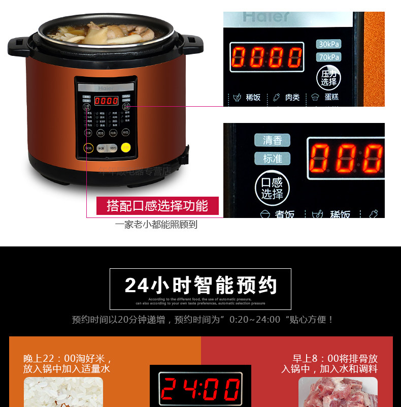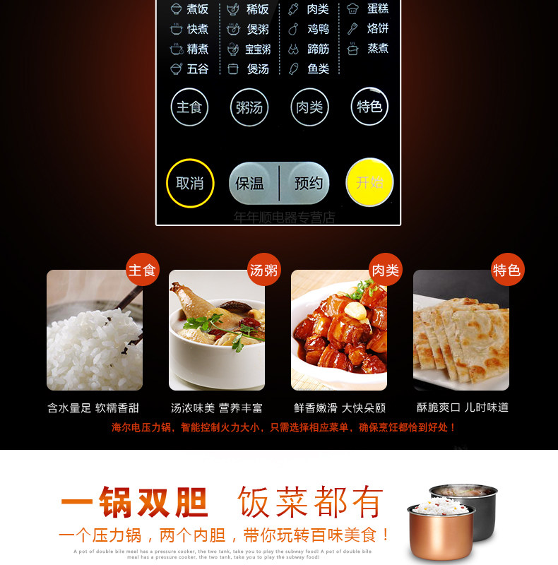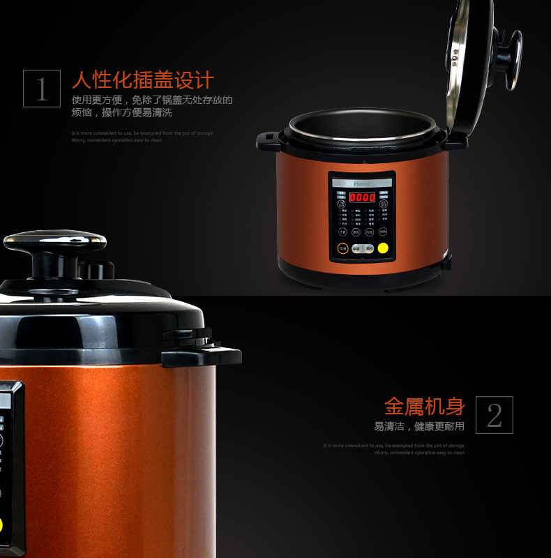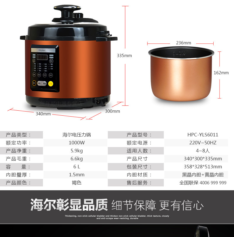 Haier/海尔 HPC-YLS6011电压力锅 6L 家用电脑式电高压锅双胆正品
