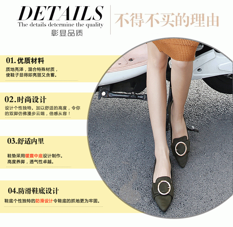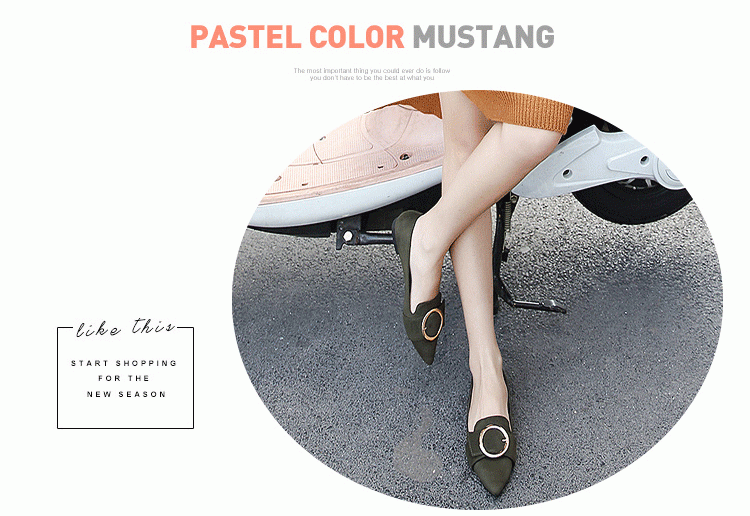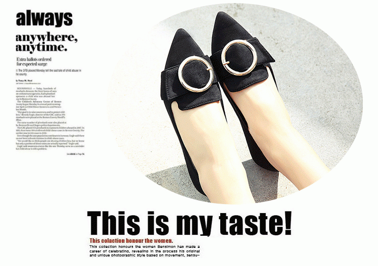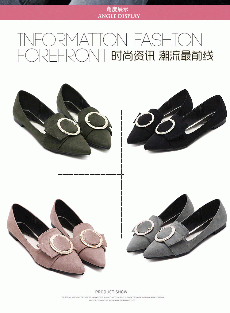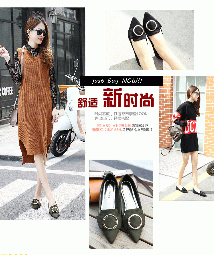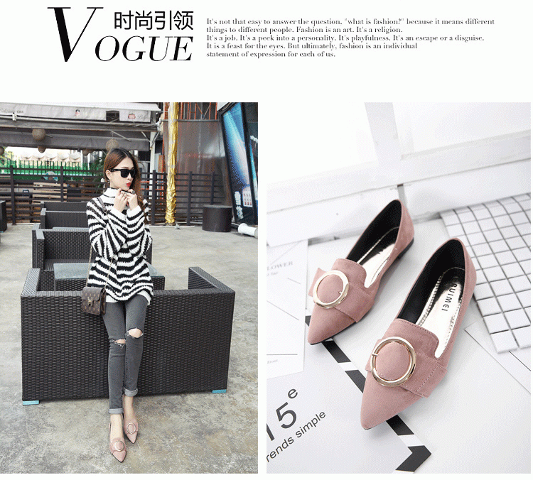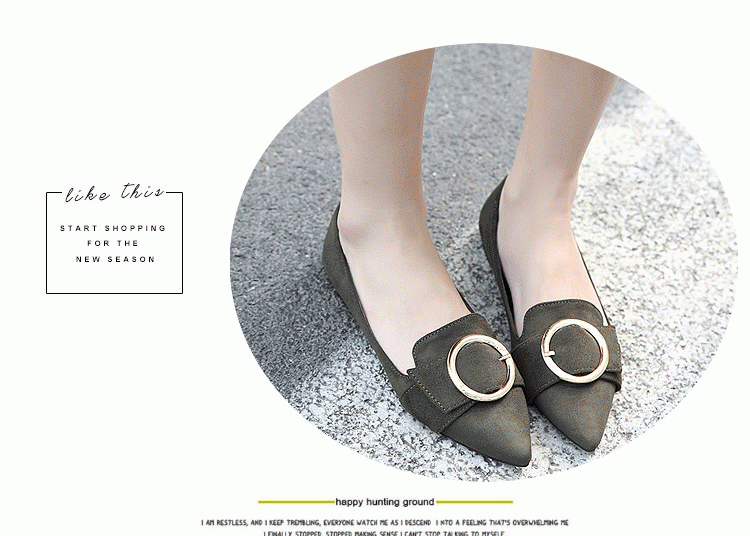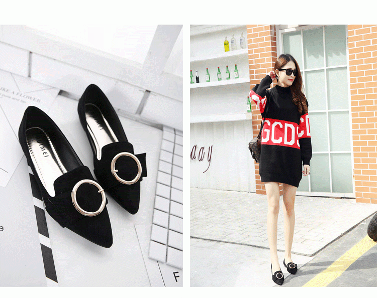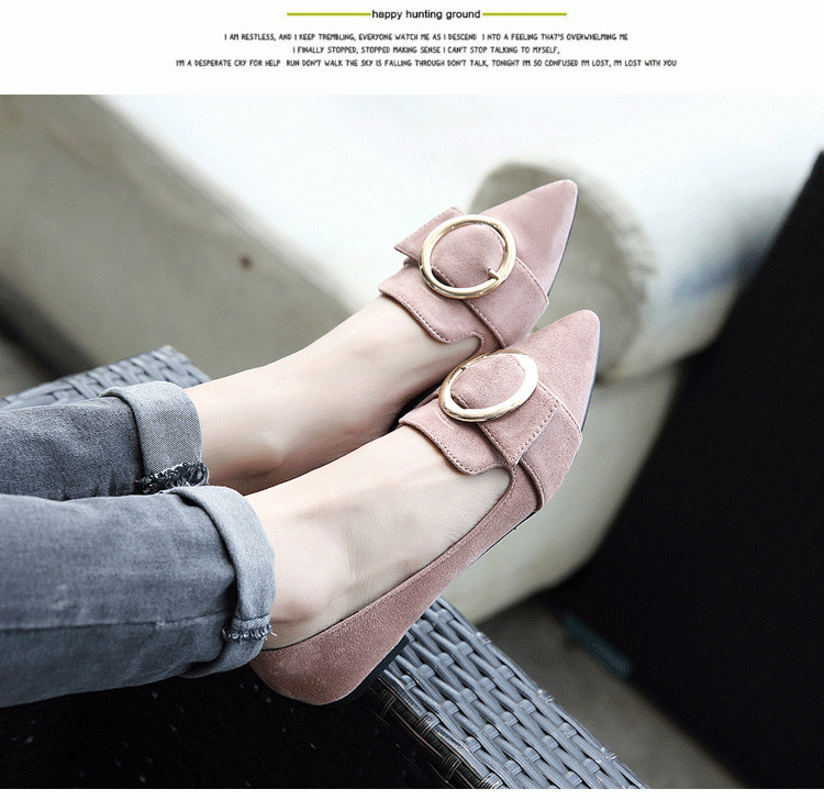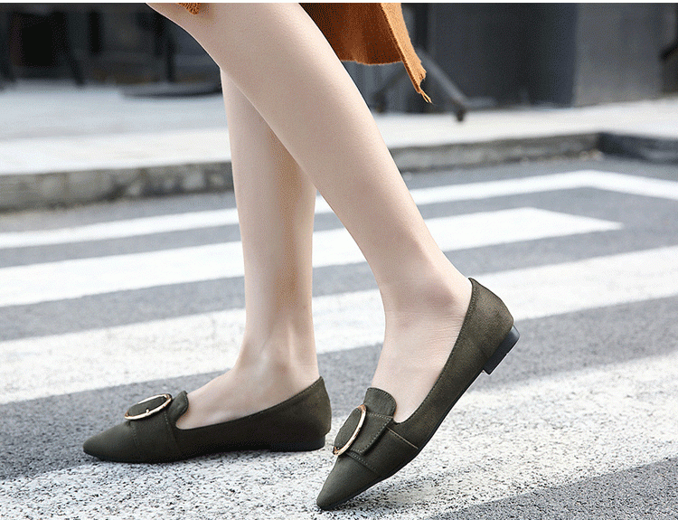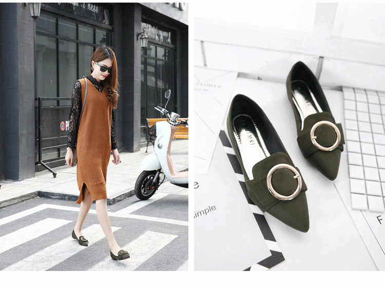 女鞋尖头绒面豆豆鞋韩版平底单鞋百搭浅口方扣女鞋