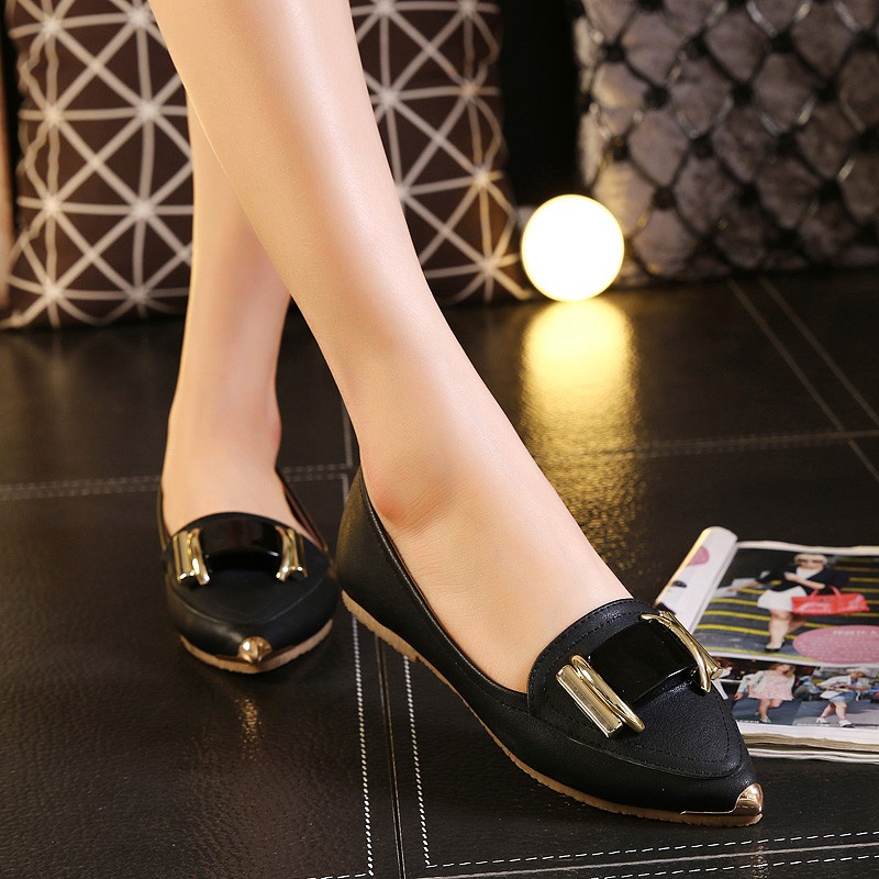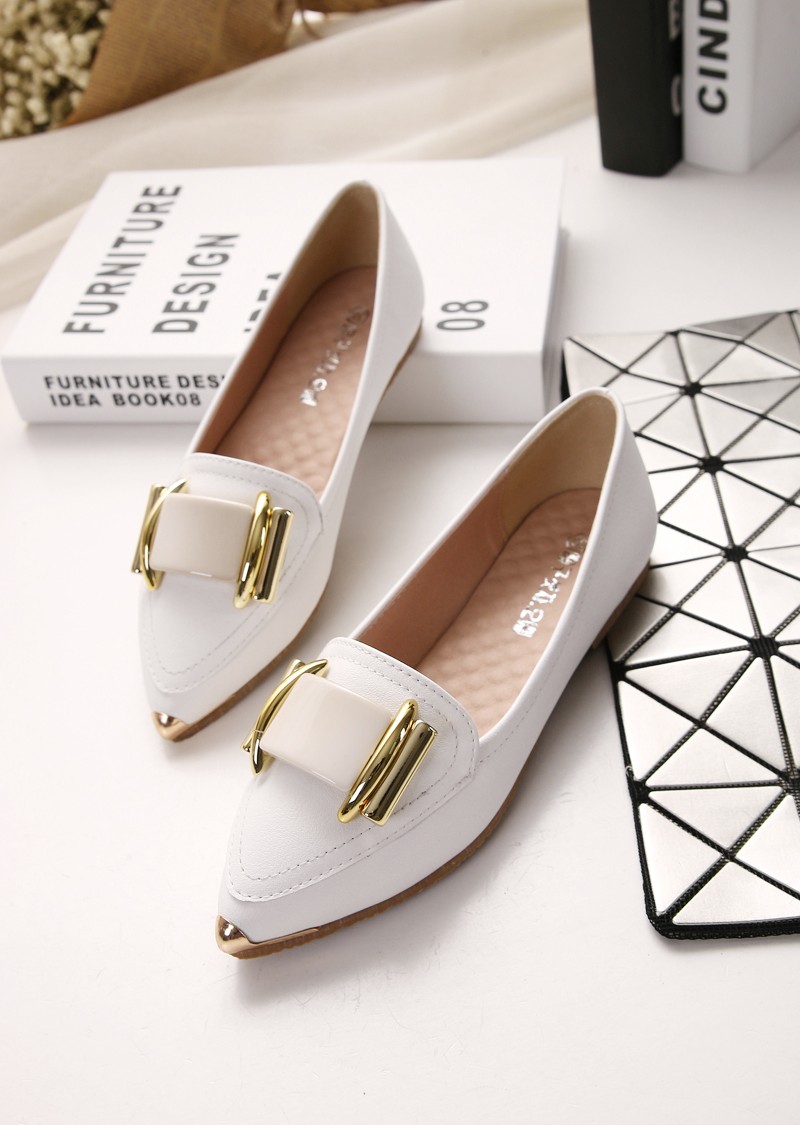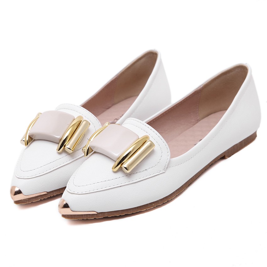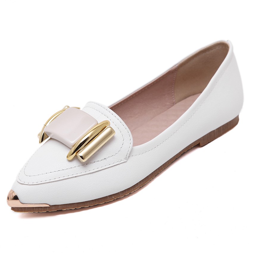 单鞋女2017春秋新款尖头平底小白鞋韩版平跟休闲皮鞋