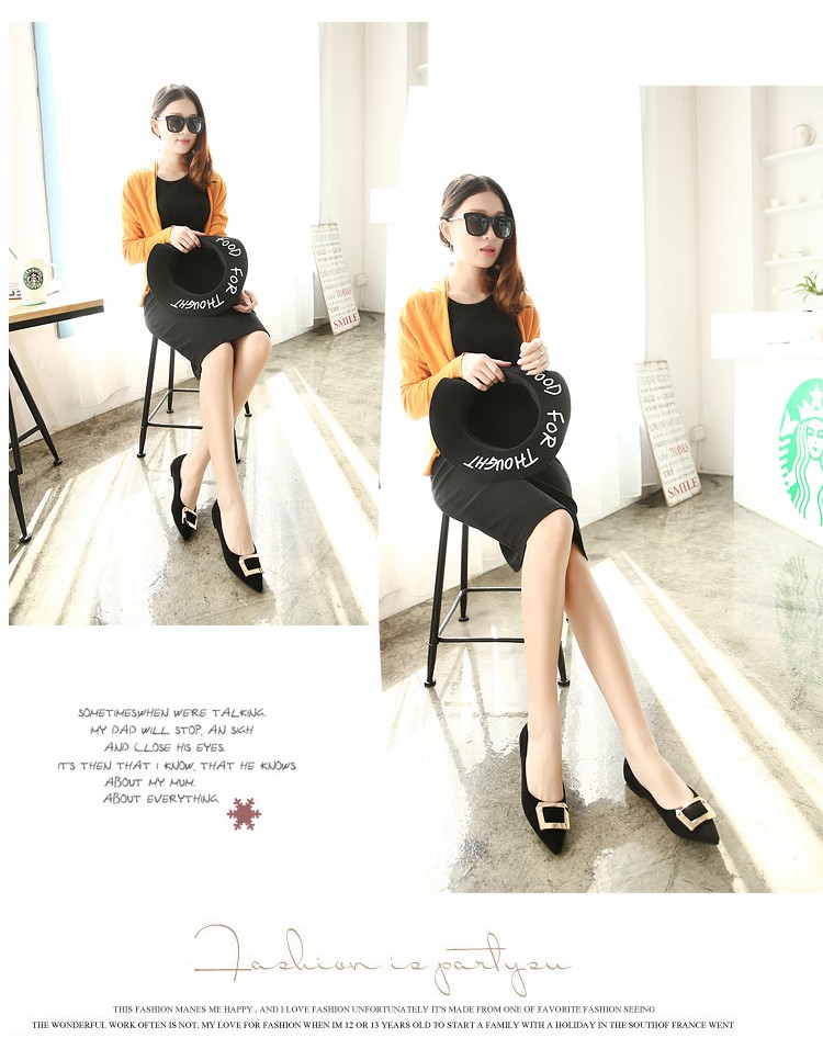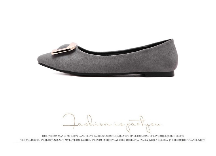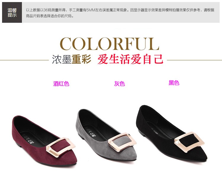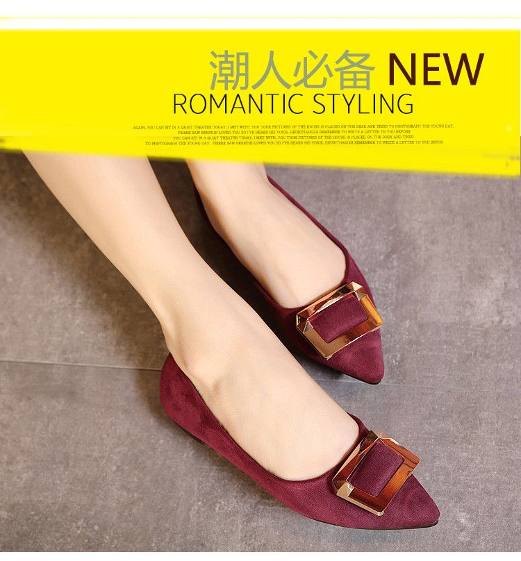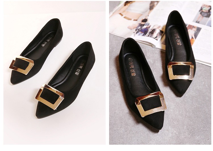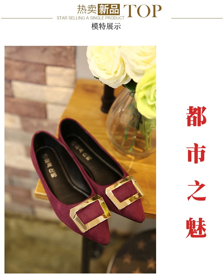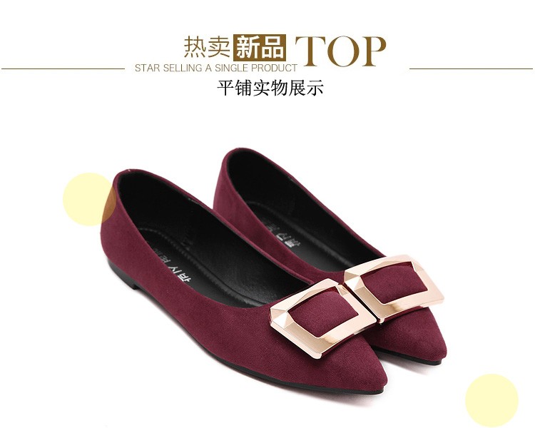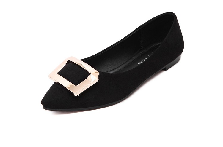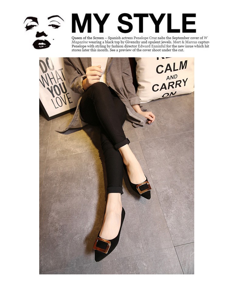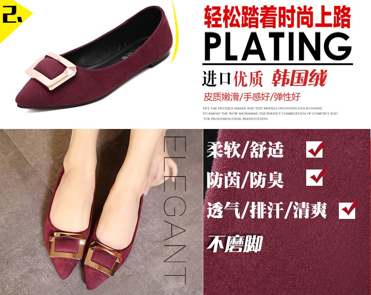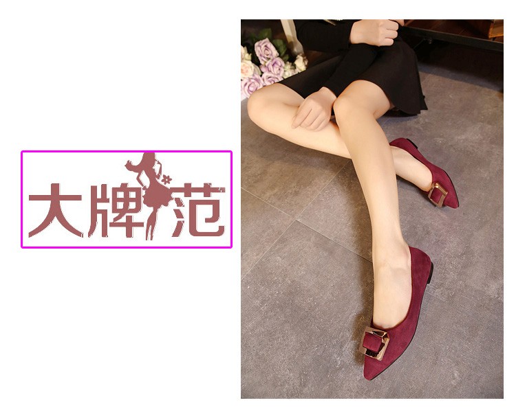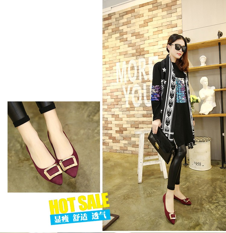 2017春秋新款尖头绒面平底鞋浅口方扣平跟女单鞋