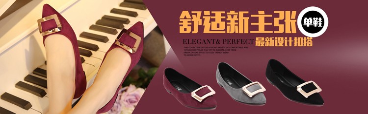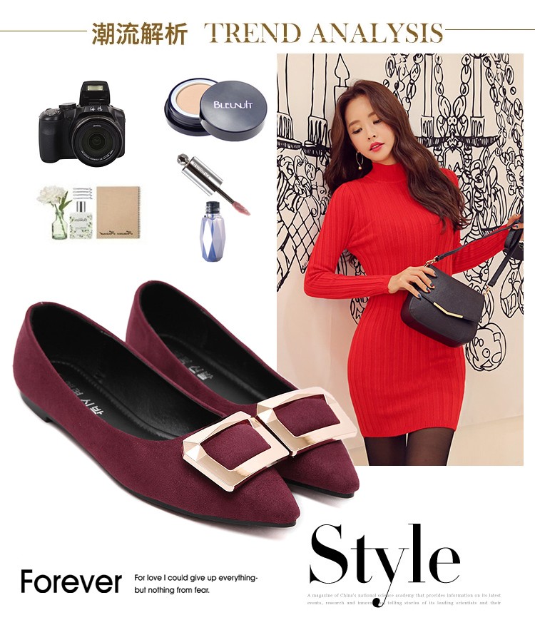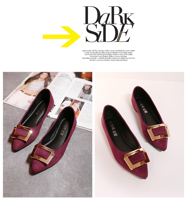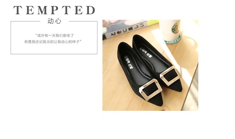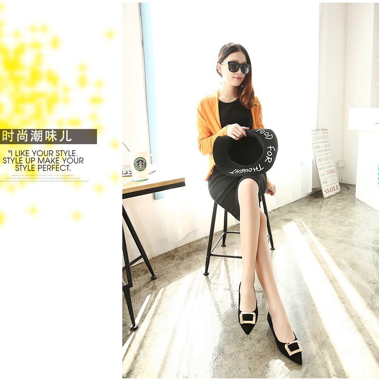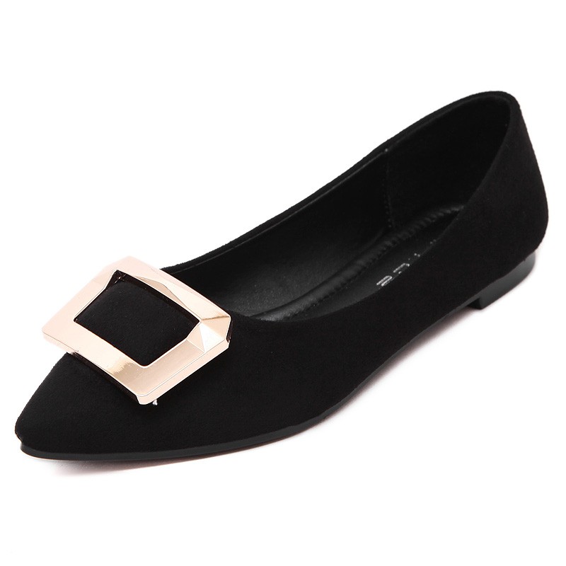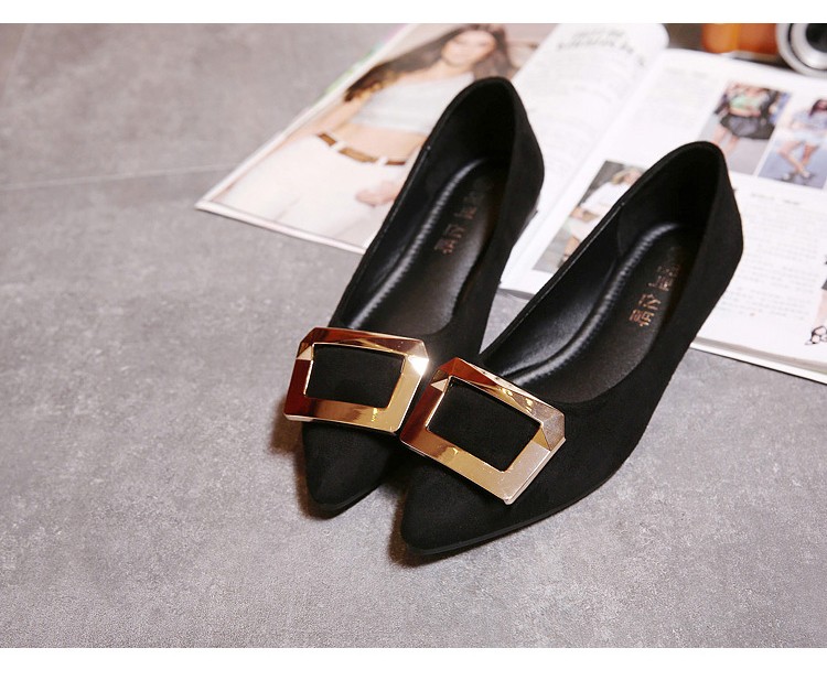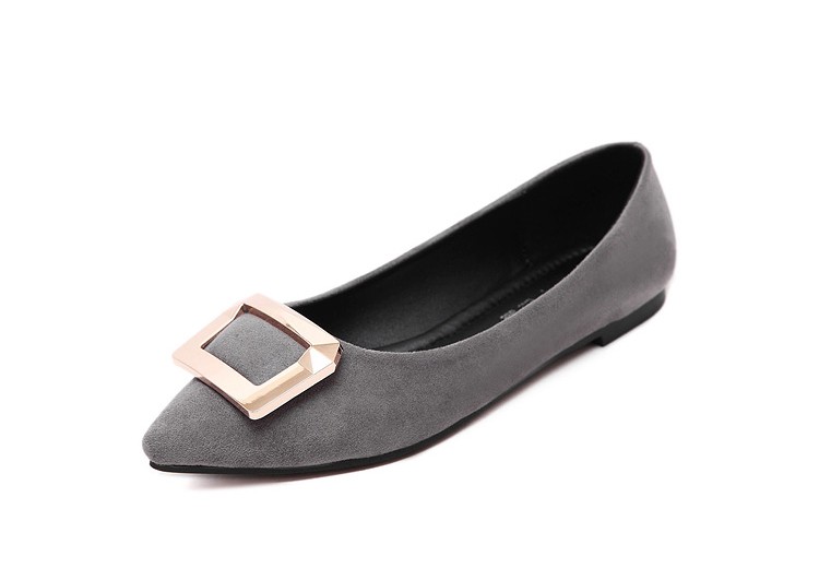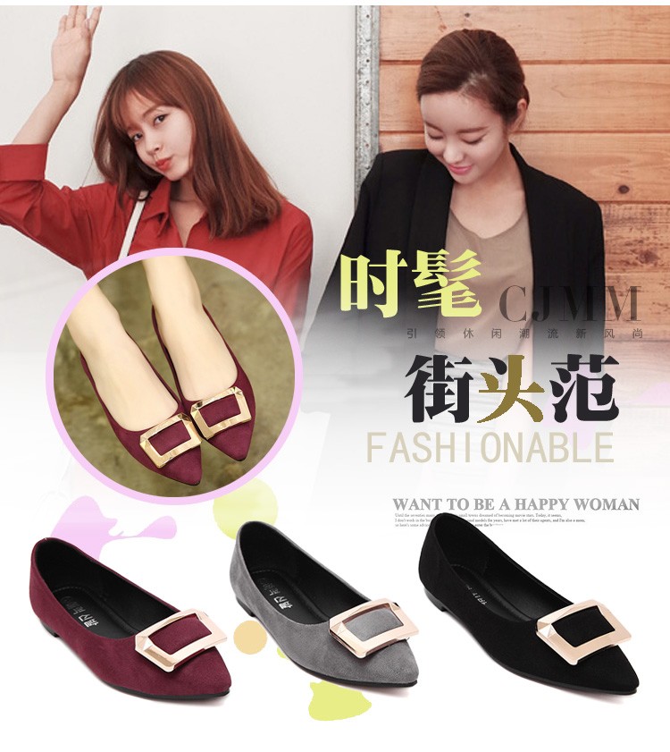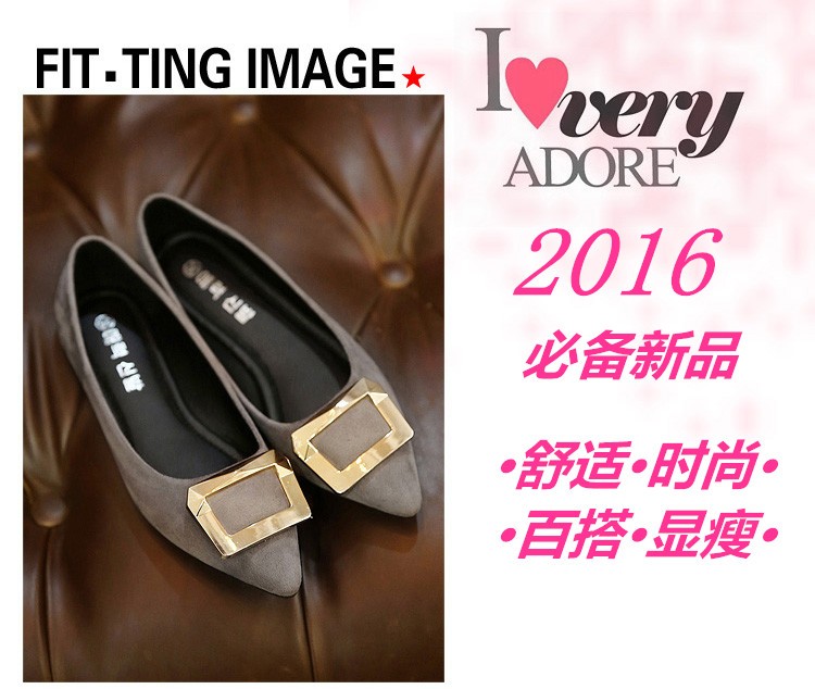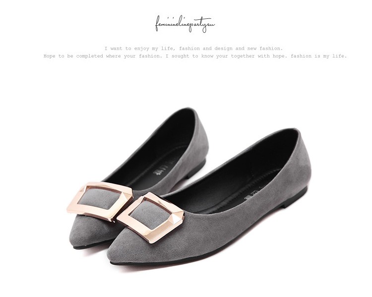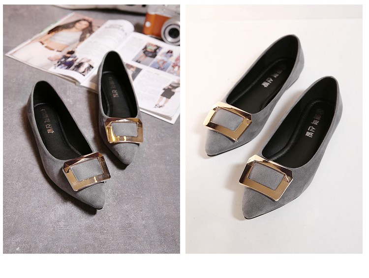 2017春秋新款尖头绒面平底鞋浅口方扣平跟女单鞋