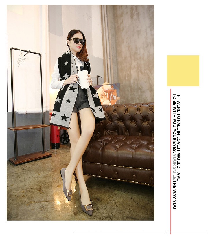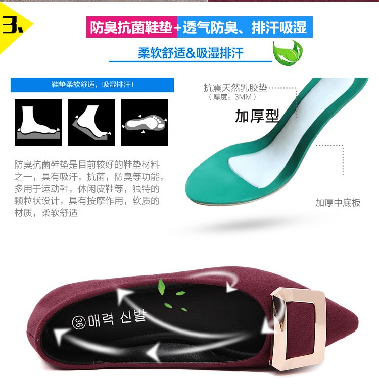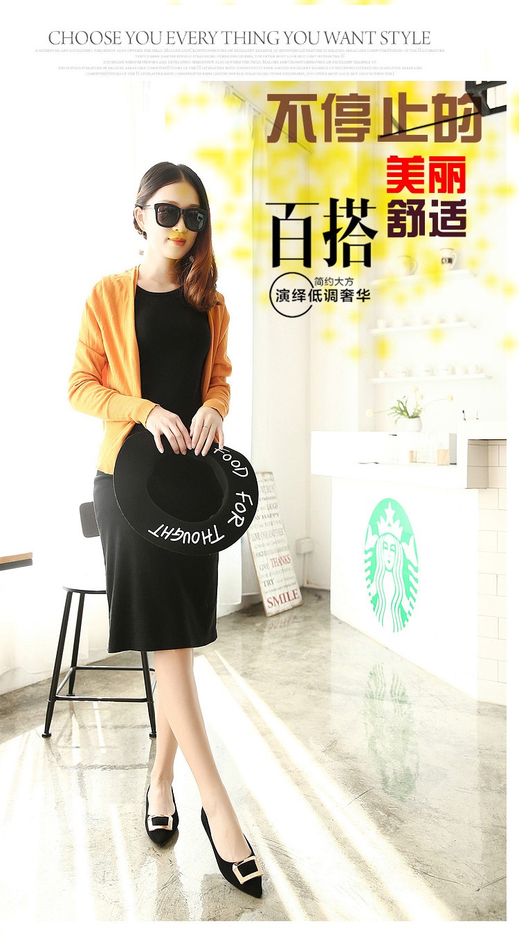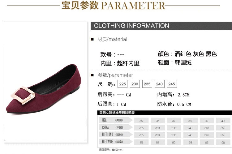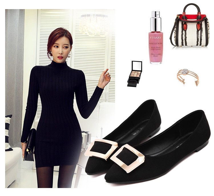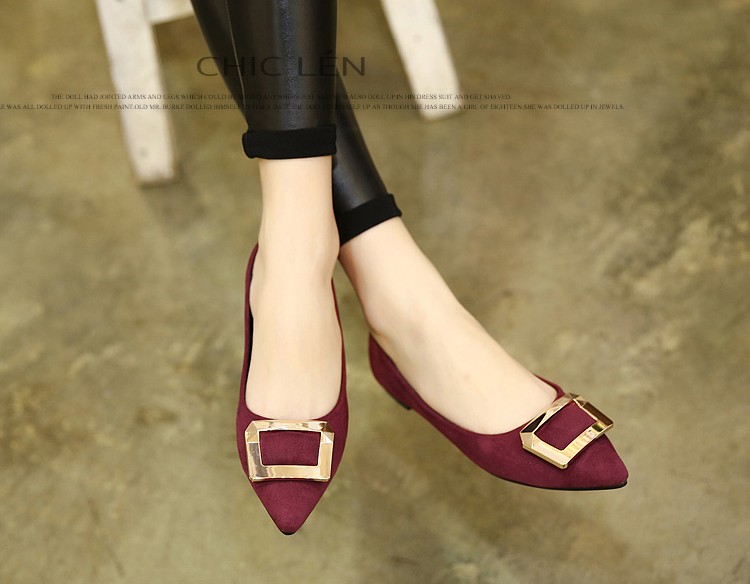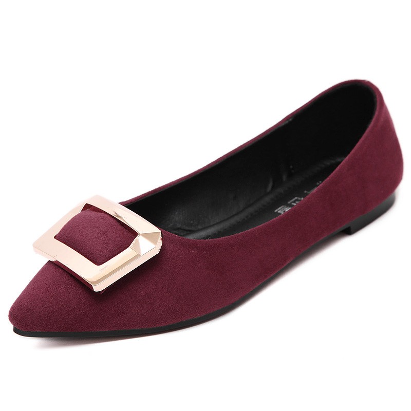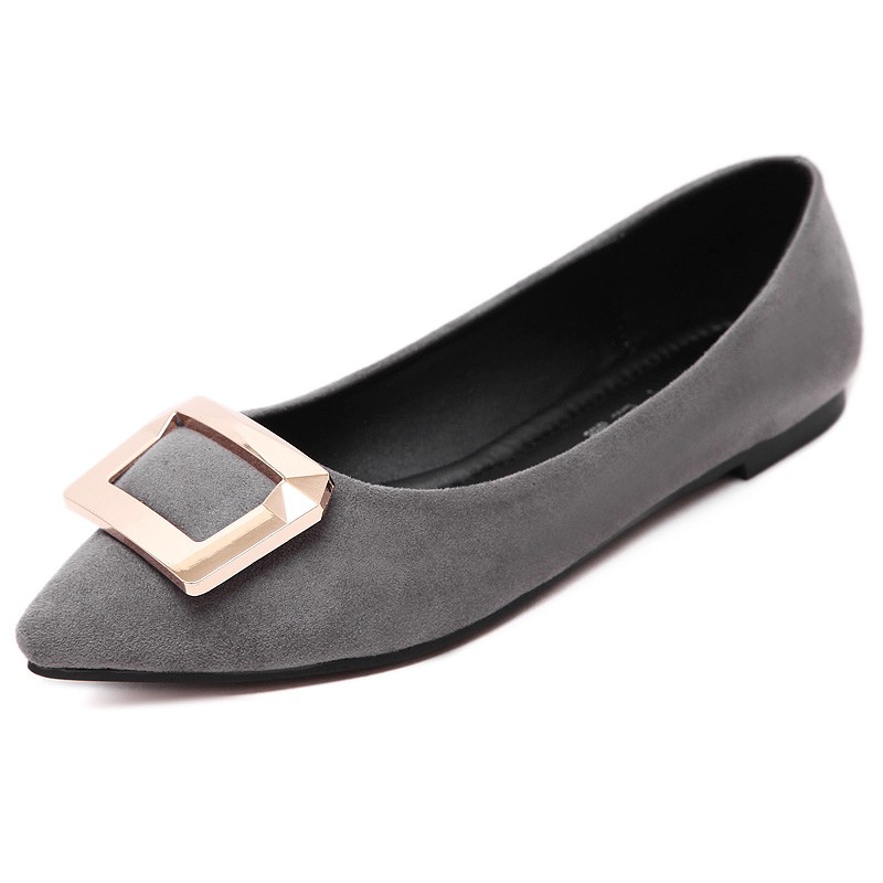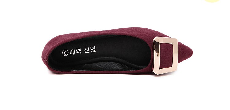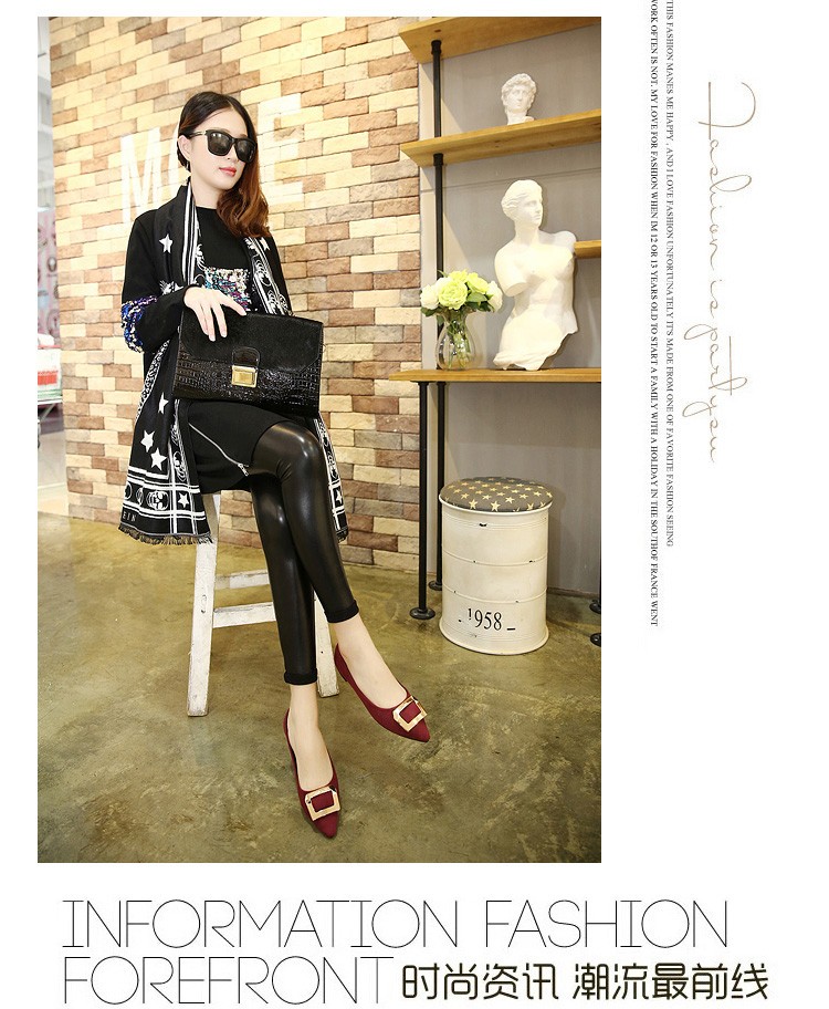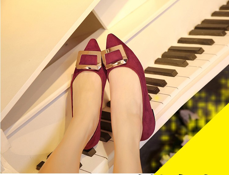 2017春秋新款尖头绒面平底鞋浅口方扣平跟女单鞋