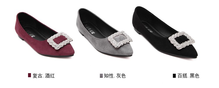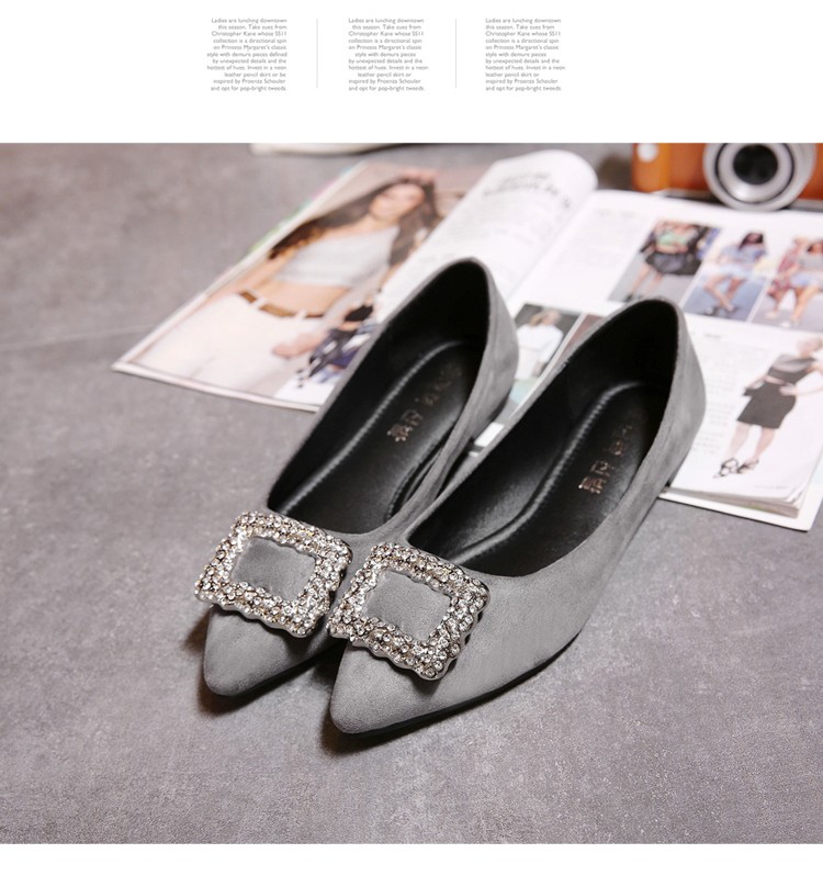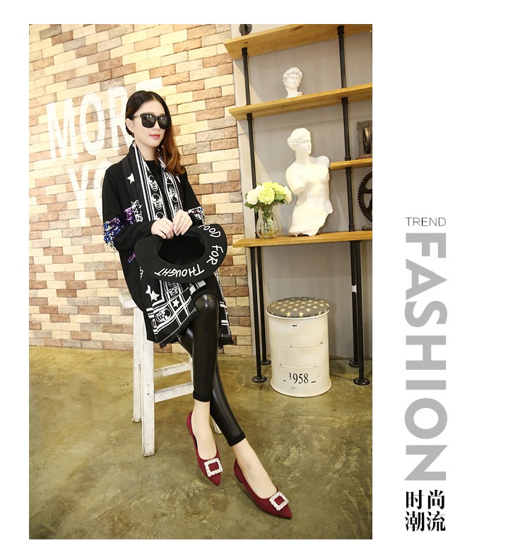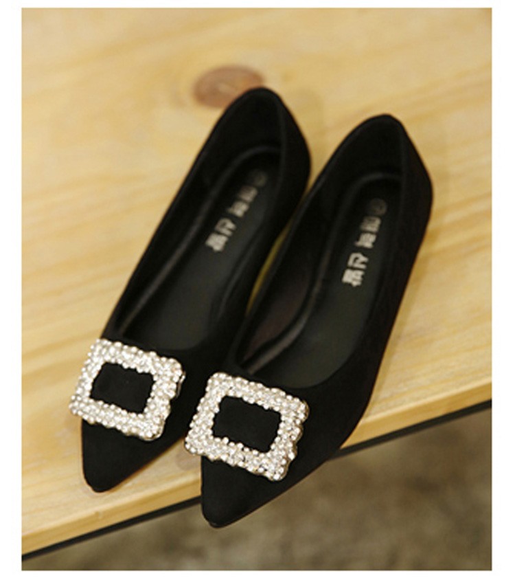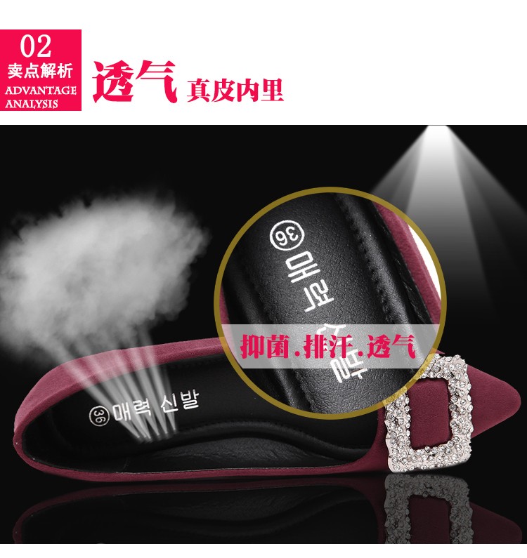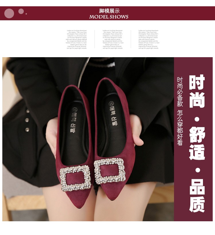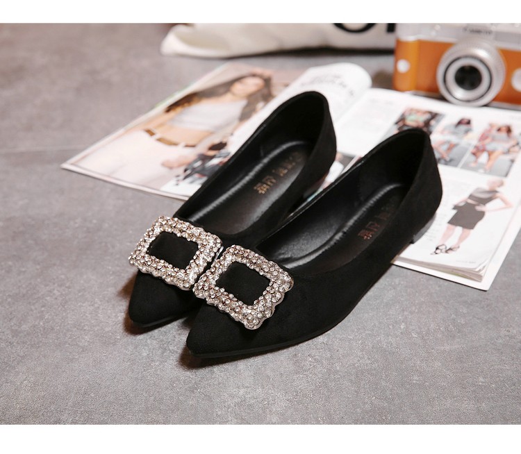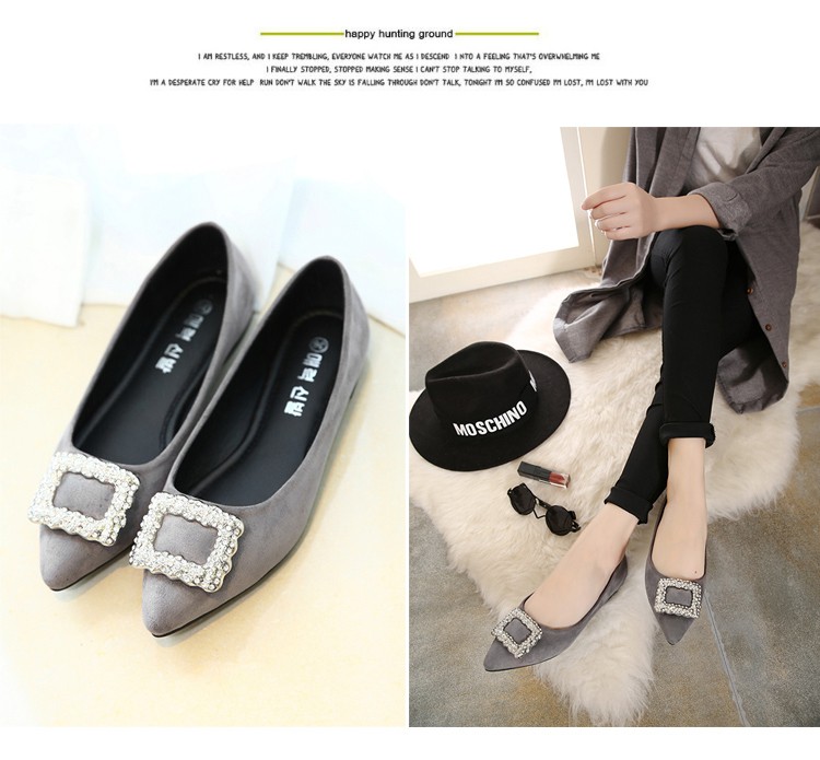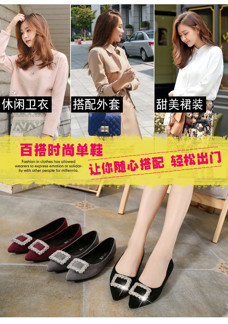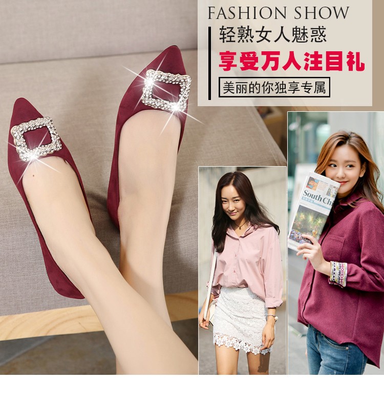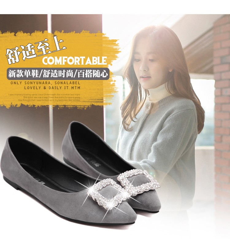 单鞋女2017春秋新款尖头绒面女鞋韩版百搭水钻潮流款
