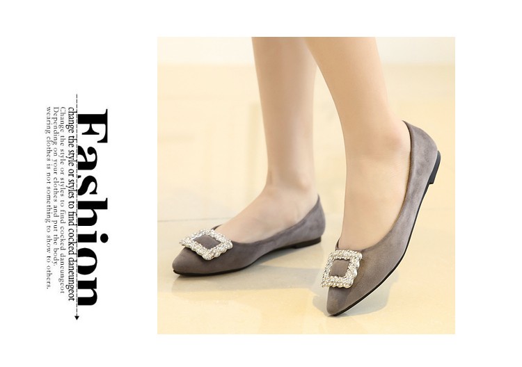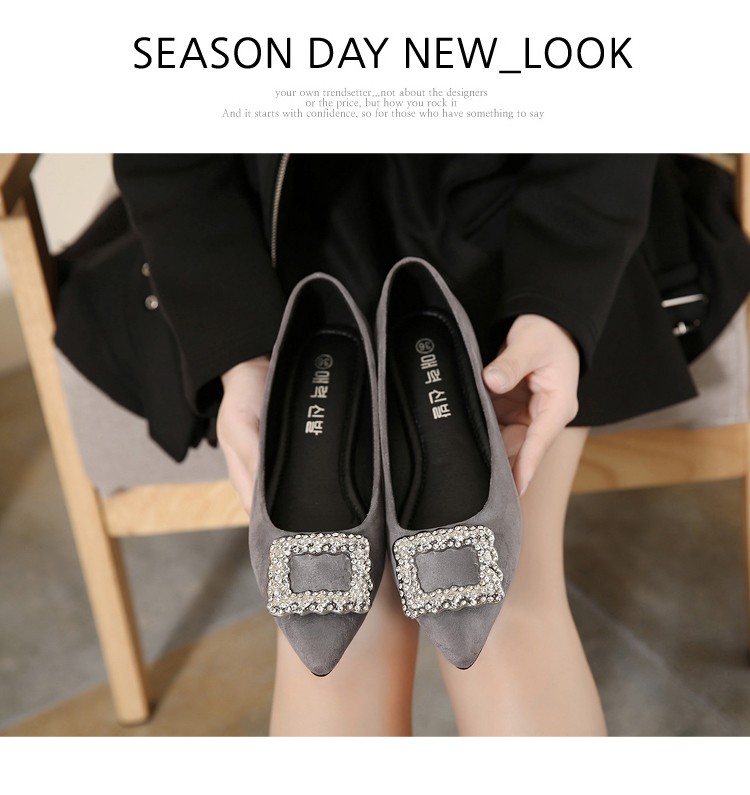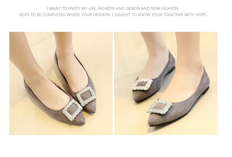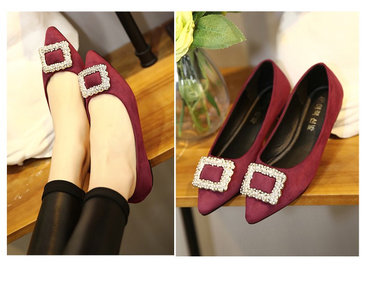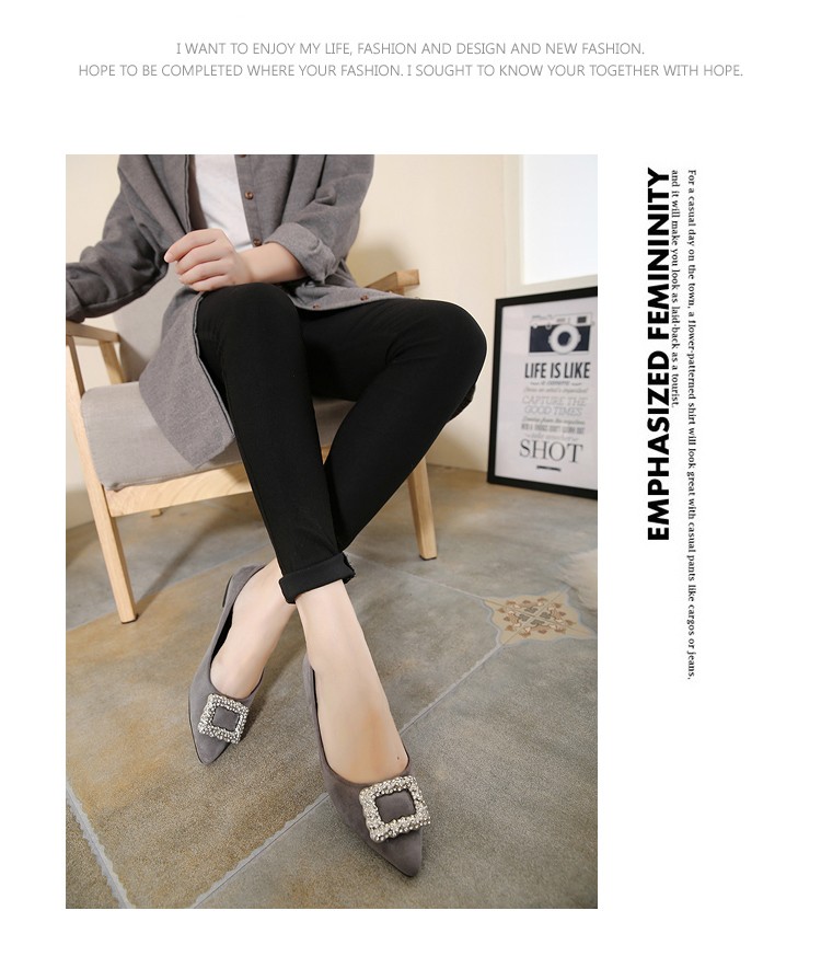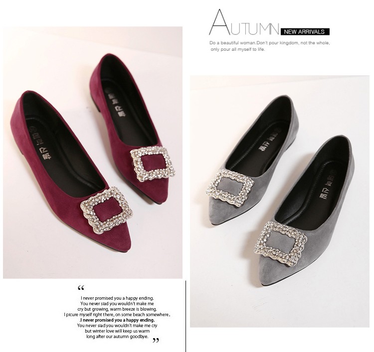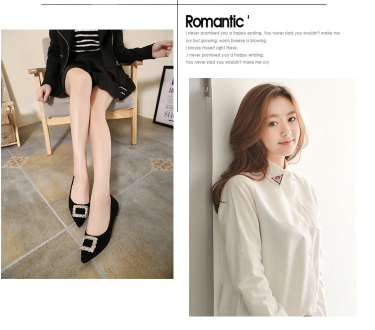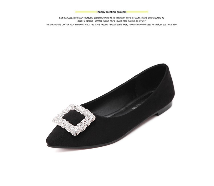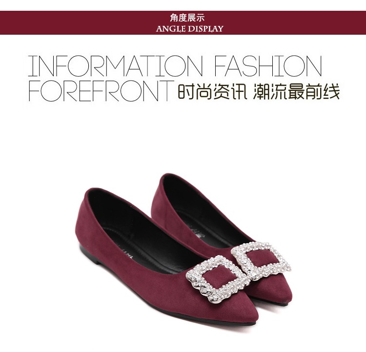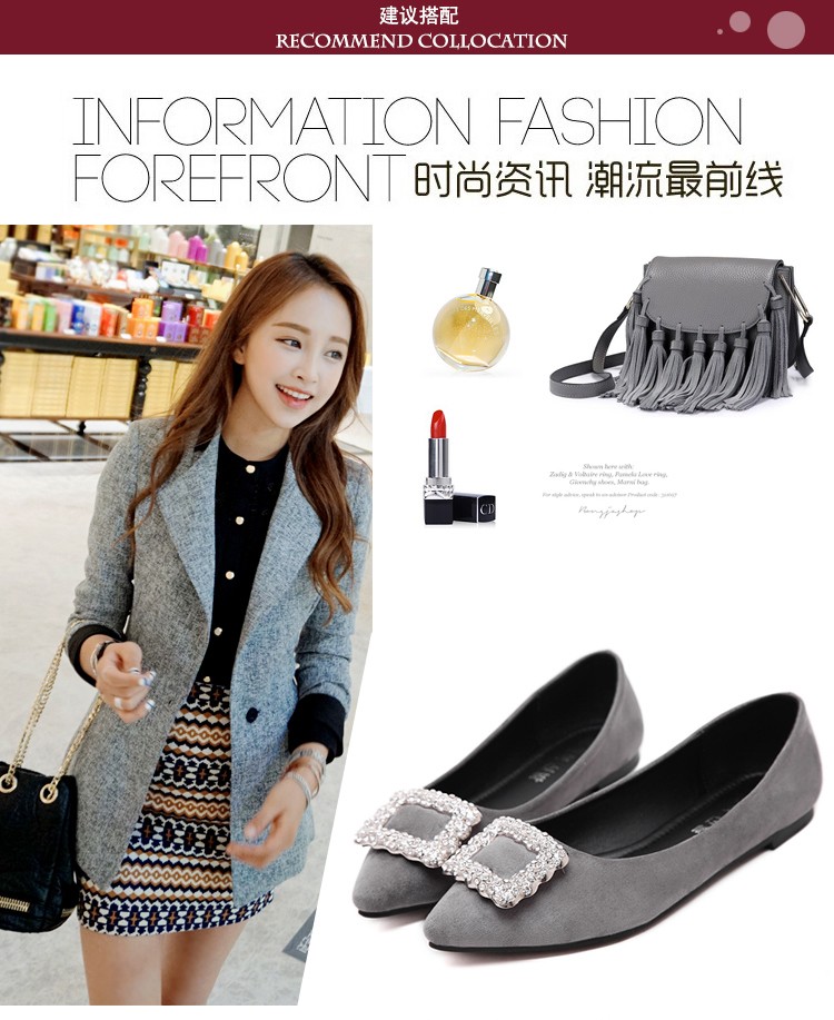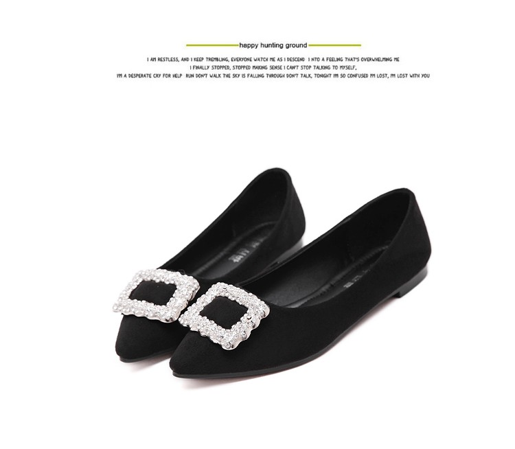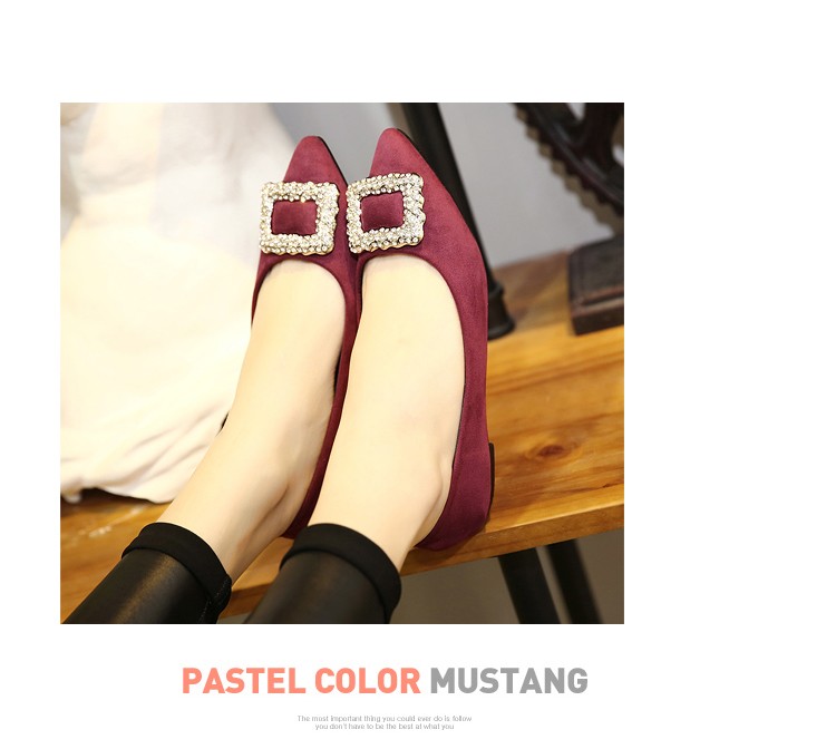 单鞋女2017春秋新款尖头绒面女鞋韩版百搭水钻潮流款