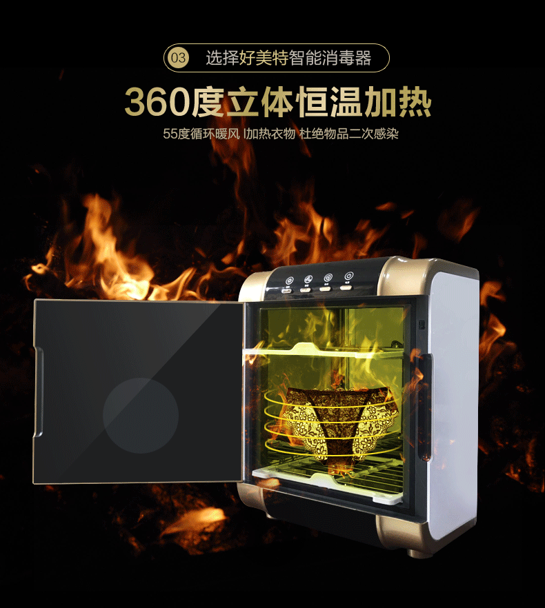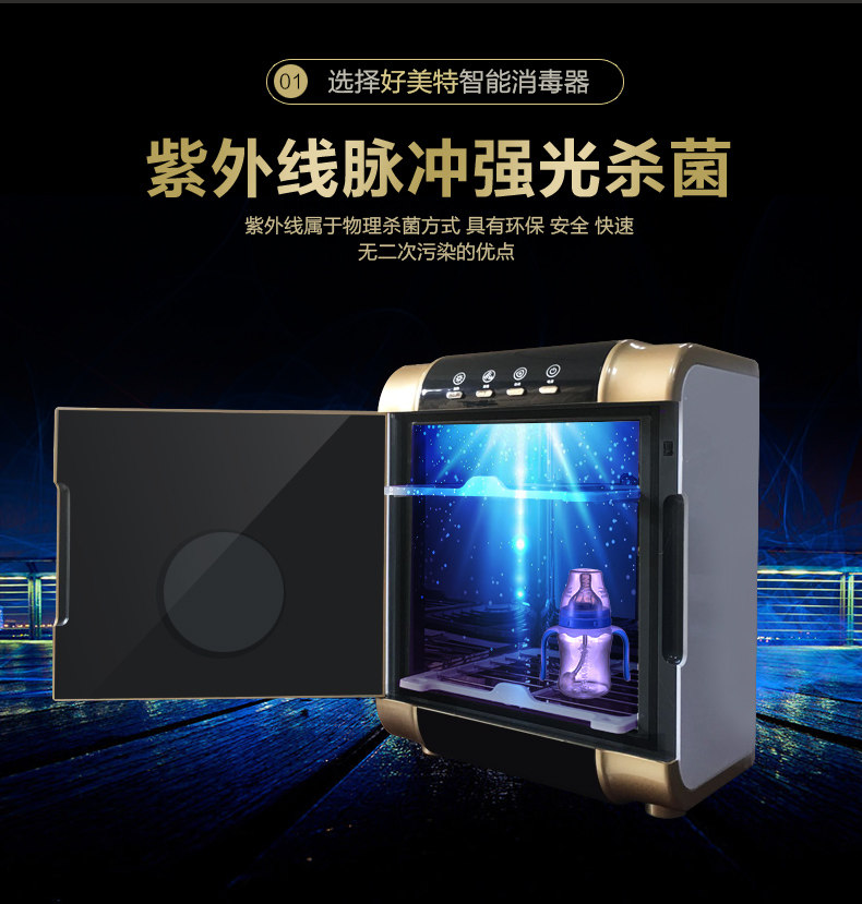 好美特紫外线臭氧婴儿奶瓶消毒器多功能毛巾烘干低温消毒机家用